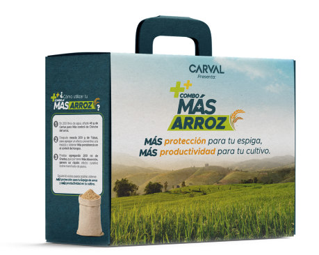 Moléculas de alto desempeño, ideales en etapa crítica del desarrollo del cultivo de arroz. Cobertura referencial por combo: hasta 5 hectáreas (ajustar según densidad de siembra, estado de cultivo y recomendaciones del asesor).